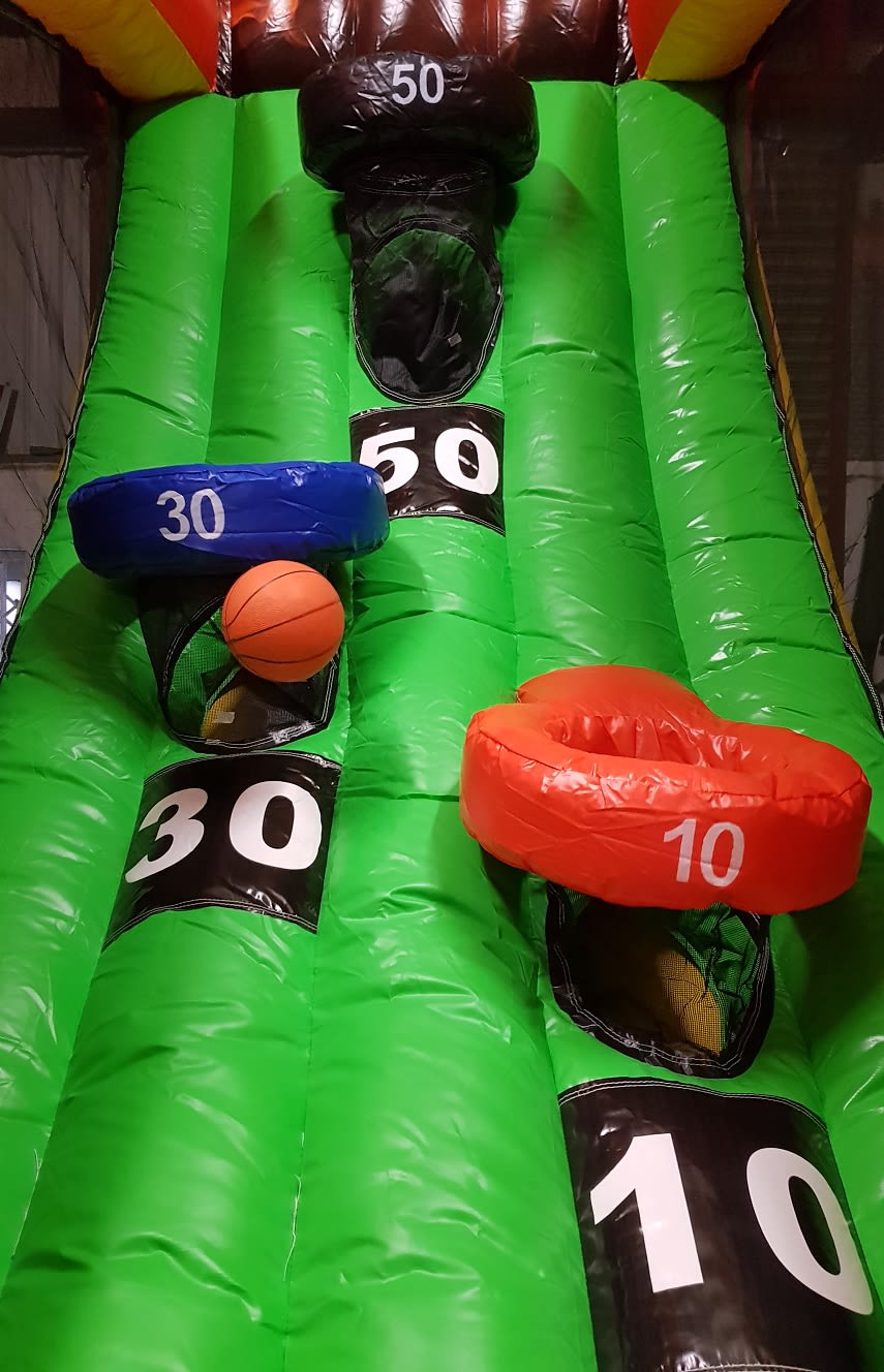 Shoot some hoops with our inflatable basketball shooter.