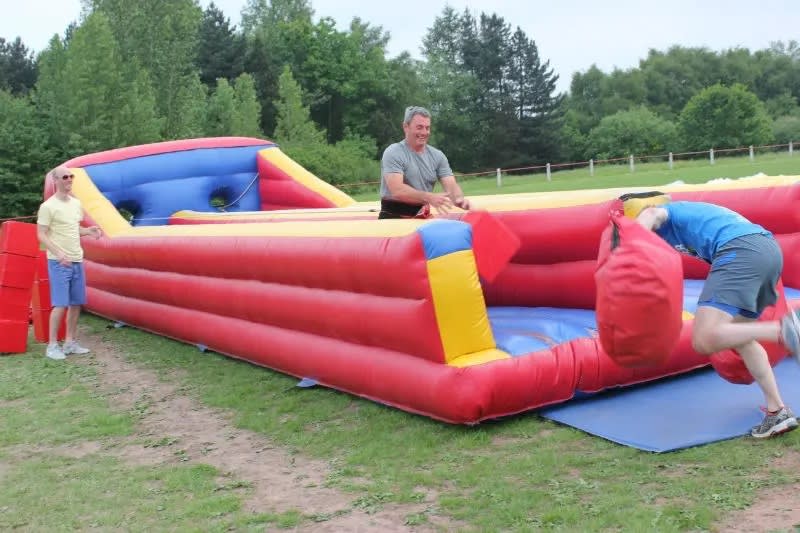 Not so easy in Extra Large Boxing Gloves and when racing against another team.