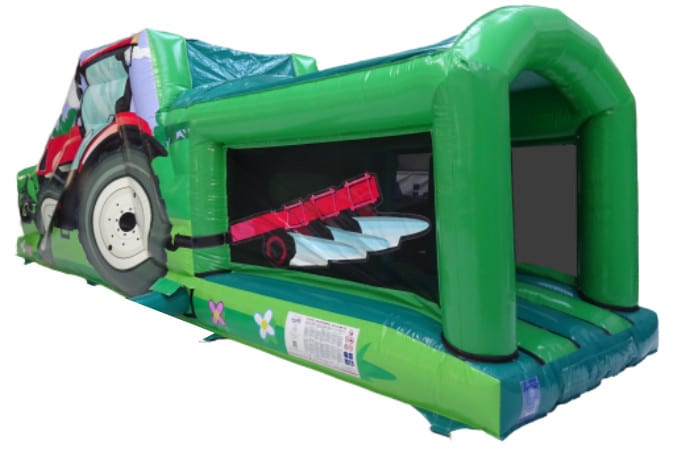 Great for Agriculture events, farming families plus who likes to play on a tractor! Play through the 30ft long assault course bouncing, past the obstacles climbing the foam steps to the top of the exit slide