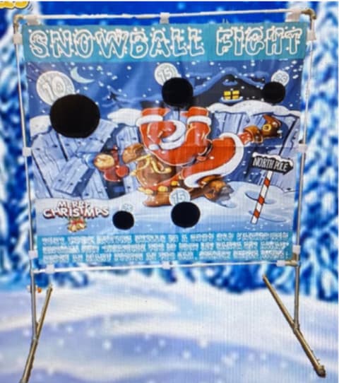 The aim of the game - Take turns to throw "snowballs" at Santa, try and get the balls into the holes to score points. Whoever scores the most points is the winner! This Christmas game is perfect for any Christmas party or event including Christmas fayre at school, office Christmas party, etc.