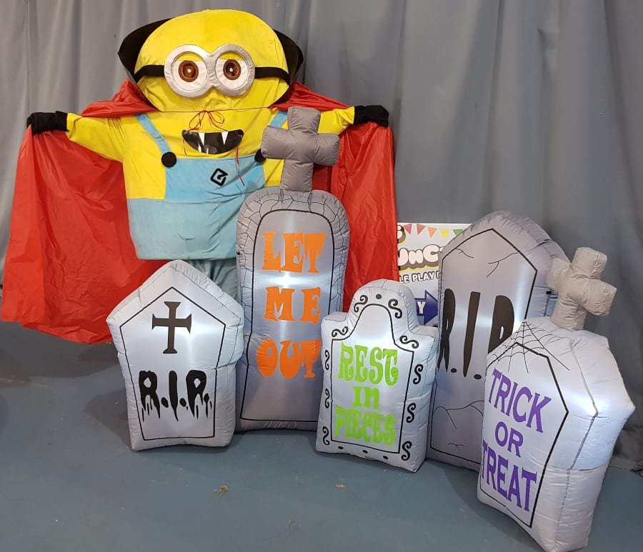 All the inflatable props require a mains socket to power the internal fan & lights