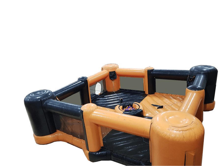 Connected to a Bungee rope to restrict your movement, just run and dive into the ball pit to grab your selecte colour of balls & return back to the bag behind to store them before returning to the ball pit.