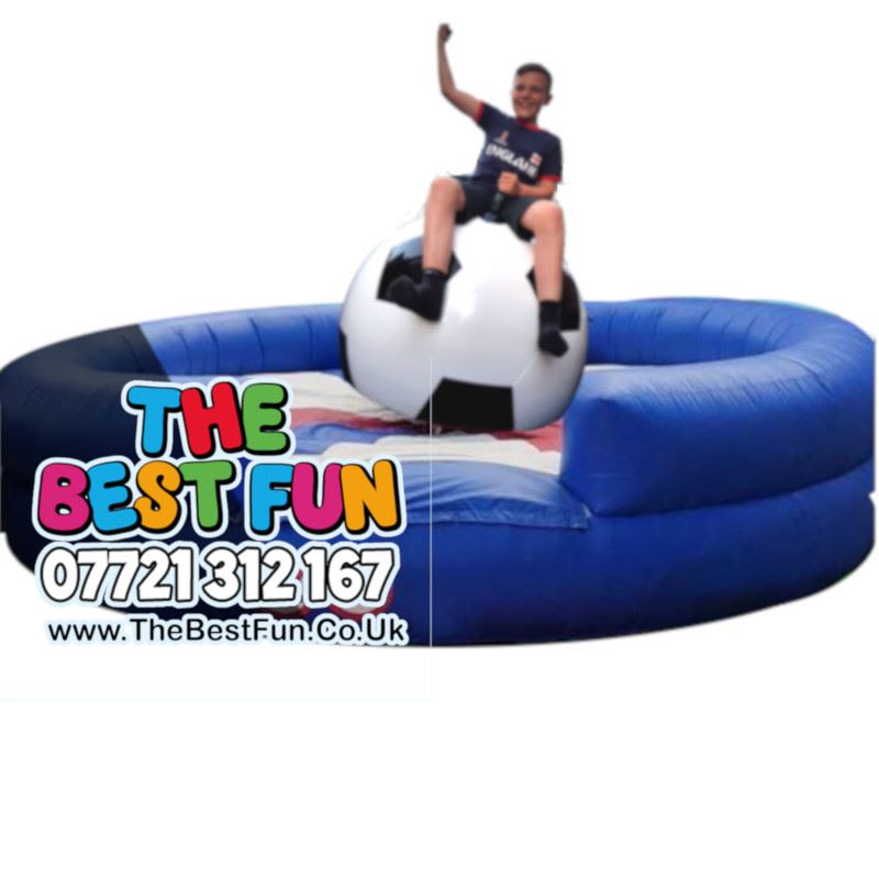 The rodeo football is operated by trained members of staff allowing them to test your balance whilst ensuring your safety, an inflatable air bed is placed around the bull guaranteeing a safe harm free landing, we also offer an inflatable roof for unexpected bad weather.