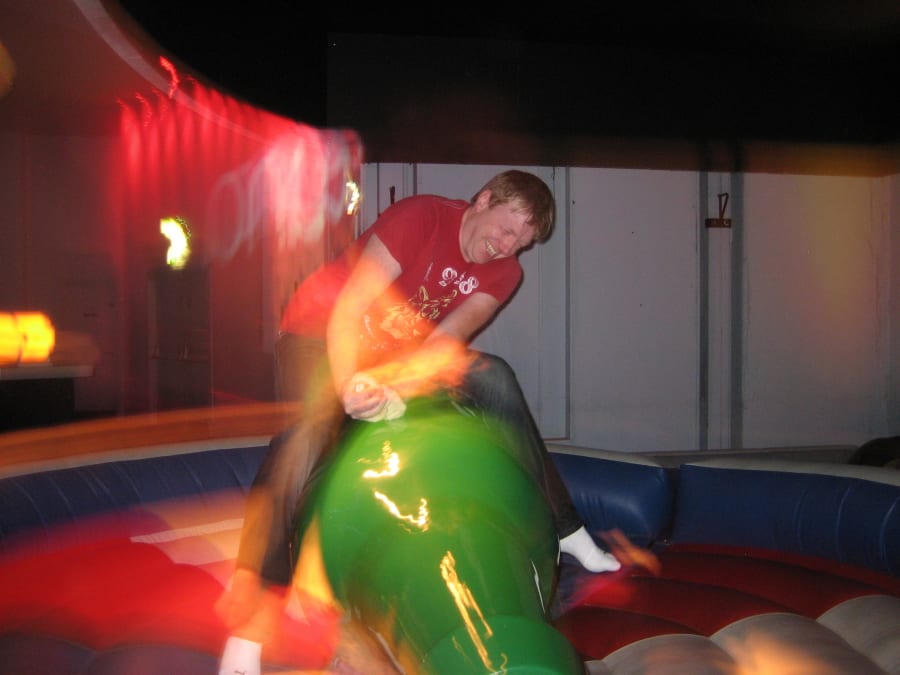 Rode a rodeo beer bottle before? Why not try surfing or snowboarding on either of our simulators.