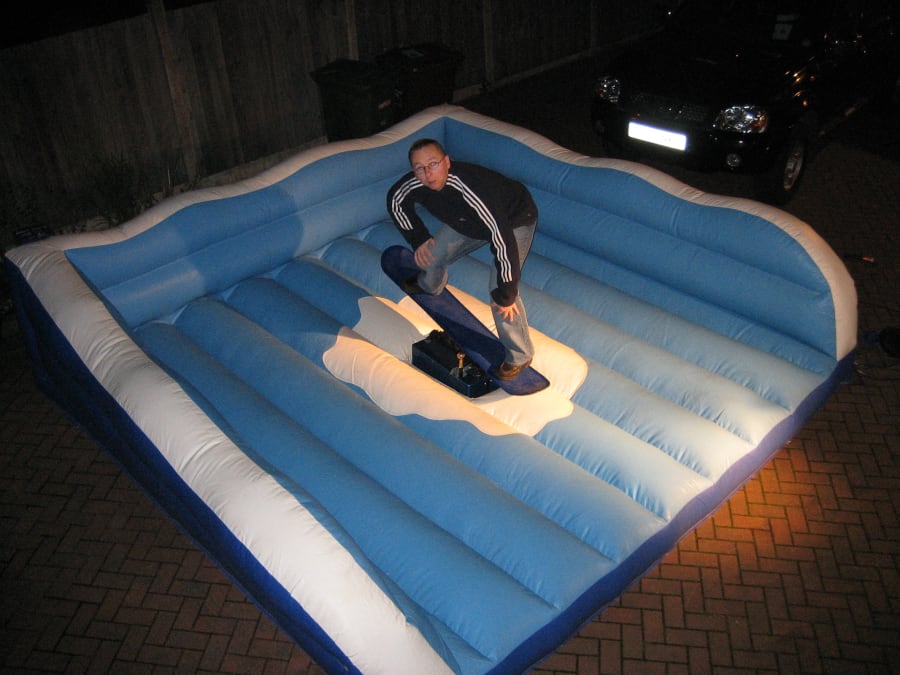 The Snowboard Simulator is operated by trained members of staff allowing them to test your balance whilst ensuring your safety, an inflatable air bed is placed around the Snowboard ride guaranteeing a safe harm free landing,